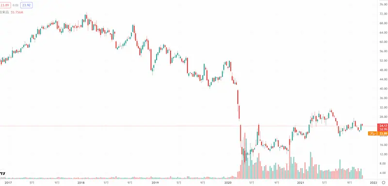 コロナが落ち着けば需要が戻るので株価が2倍くらいになる可能性もある。