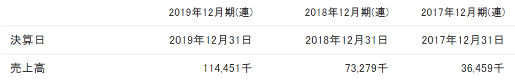 年間の成長率がすごいです。2019年の成長率は56%の成長。