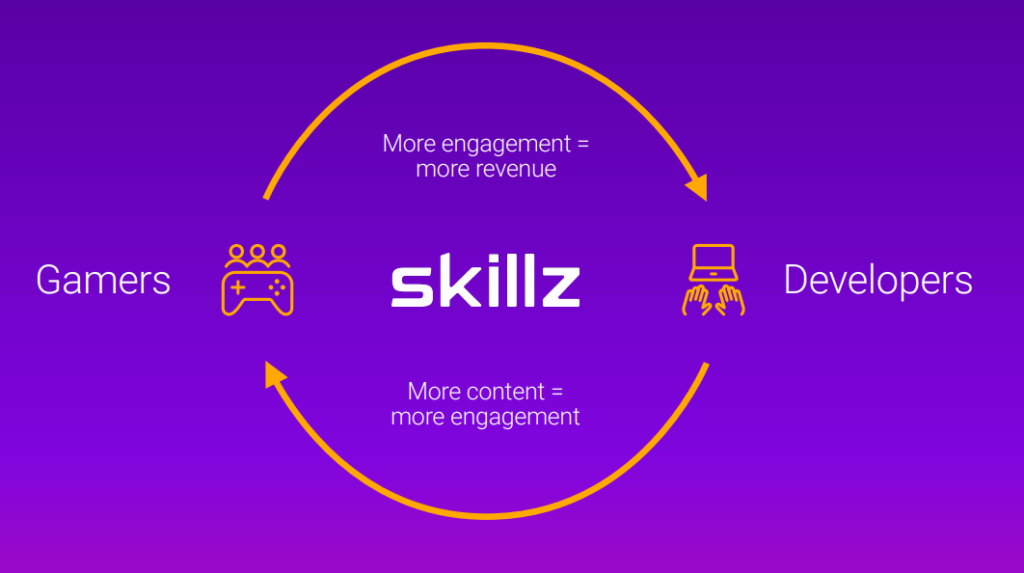 スキルズのアプリケーションを使用することによって、スマートフォンなどの開発者は、簡単にお金をかけたトーナメントなどを導入することができます。スマートフォンの拡大によって、スマホゲームをする人口が増加傾向にあります。初めはゲームをたのしむだけだったのが、より自分の力を試したいという気持ちなどが強くなっていき、世界中のライバルと戦いたい。そのような思いがつよくなっていのではないでしょうか。スキルズは各アプリケーションに導入できるゲームの大会を運営し、そこから手数料をもらうビジネスを行ってます。
