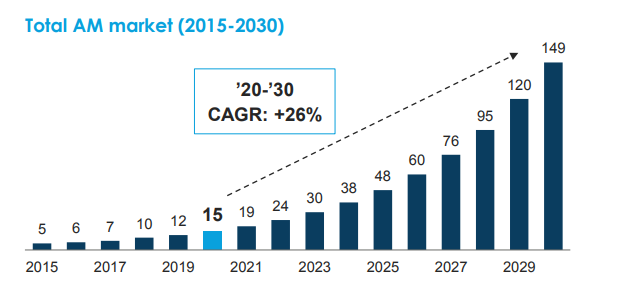 単位はB$のようです。現在は15B$になりますが、今後の2020年~30年にむけてはCAGR26%の成長を見込んでいるとのことです。